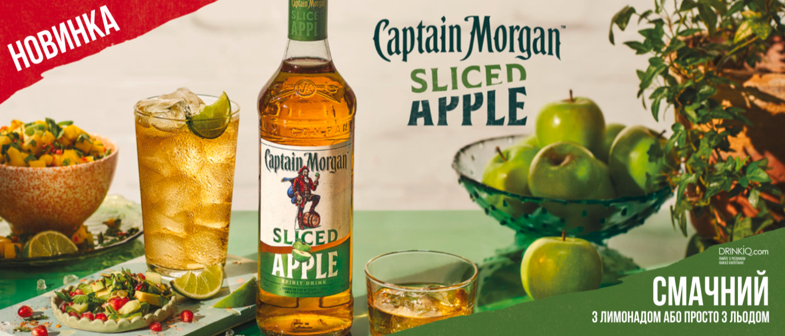 Представляємо смачний ромовий напій Captain Morgan Sliced Apple. Завдяки своєму свіжому, соковитому і збалансованому смаку пряний ромовий напій Captain Morgan Sliced Apple вигідно вирізняється з-поміж інших алкогольних напоїв. У композиції Captain Morgan Sliced Apple класичний смак нашого культового рому Captain Morgan Original Spiced Gold поєднується з несподіваними нотами свіжого соковитого яблука та ледве помітним відтінком імбиру.